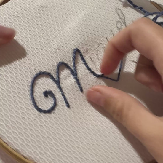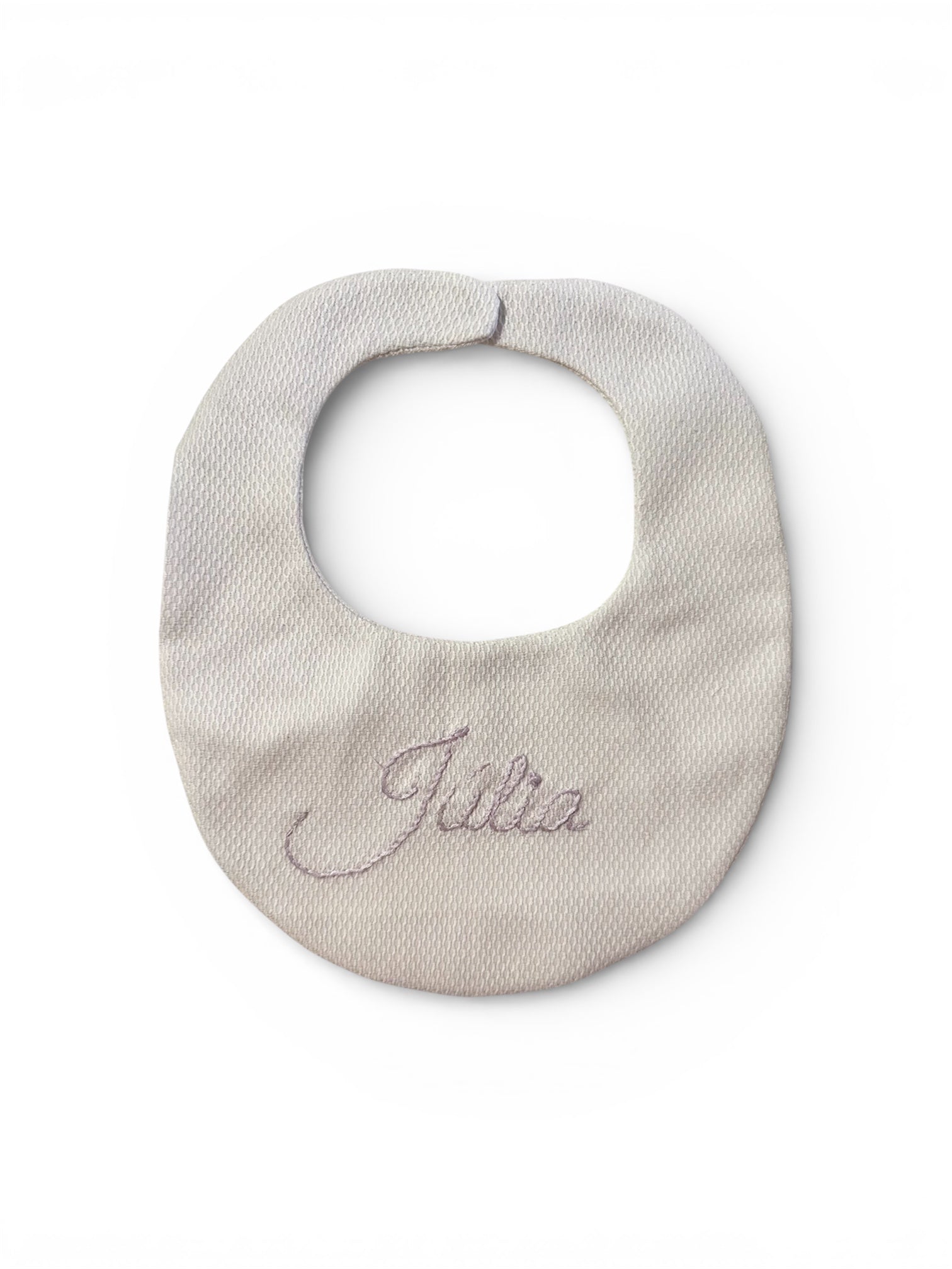 Babero de algodón. Personalizado con el nombre, bordado a mano.